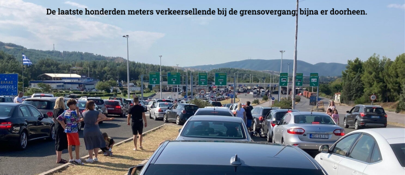 Zoals verwacht: een gezondheidswandeling. Klokslag 12u 's middags binnen gereden bij Villa Blue Apartments in Chalkidiki Thessaloniki. Enige calamiteit was een kilometerslange file bij de grensovergang. Daar rij ik gewoonlijk dwars doorheen maar hier was het zo hectisch en chaotisch en soms zo erg nauw dat er bijwijlen even geen doorkomen aan was. En met de zijkoffers erop staat de Kawa ook iets breder. Ik wring er me in een dik half uur doorheen en heb medelijden met de vele kinderen op de achterbank van volgestouwde wagens die hier uren en uren in de hitte vastzitten.