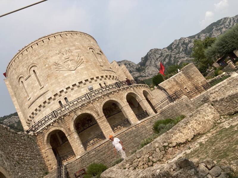 Ik lijk 16u te gaan halen om in Shkodër te raken en hoewel ik dan ongeveer acht uren letterlijk in het zadel zal hebben gezeten besluit ik voorbij Tirane om een ommetje richting Krüje te maken. Een half uur van de route heen, een half uur terug en ginds een klein uurtje kuieren in het lieflijke middeleeuwse dorpje op de bergtop. Ik scoor er enkele souvenirs, drink veel water en wat snelle suikers en duik weer naar beneden. Voor 18u zal ik op mijn bestemming in Shkodër arriveren.