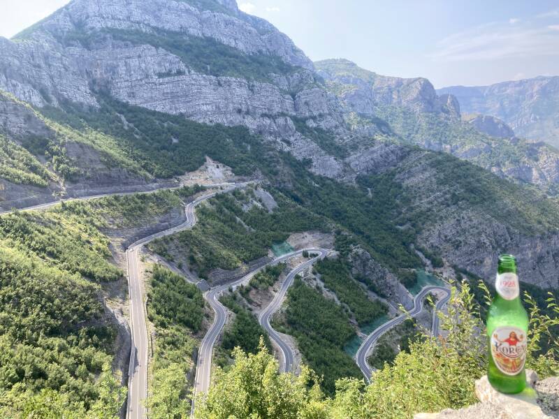 Het wegdek is even onvoorspelbaar als de Accursed mountains zelve: de ene keer slinger je over nagelnieuw asfalt, een andere keer dokker je over een grintweg bezaaid met losliggende stenen. En het ene kan als vanzelf in het andere overgaan en vice verca. Aan de Albanese zijde van de bergketen is de heel recente SH20 die van het Meer Skadarsko Jezero tot helemaal boven aan de grensovergang met Montenegro in Vermosch loopt, een van de allermooiste motorwegen in Europa. Het asfalt is nagelnieuw, de weg ruim breed voor een tegen de bergwand geprangde slingerweg te zijn en over het ganse traject zijn balustrades voor verhoogde veiligheid aangebracht. De omgeving is fabelachtig majestueuze, de vergezichten leveren prachtige plaatjes op. Ik ken geen leukere en mooiere motorweg dan de SH20: een frivole speeltuin voor de motard.